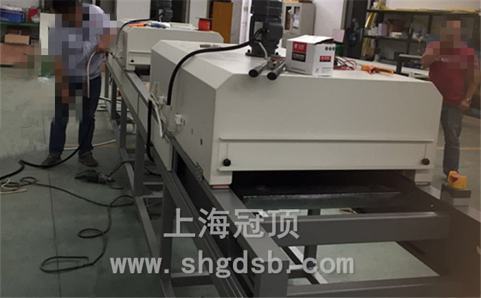 隧道式固化爐主要參數(shù) 總長6.5米、上料段0.5米,輸送帶寬度0.8米,第一段烘烤1.5米、第一下料區(qū)1.5米、第二段烘烤1.5米,第二下料區(qū)1.5米。