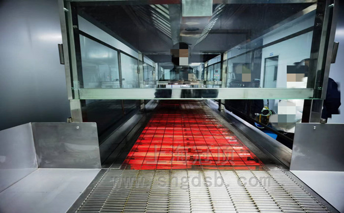 輸送式食品烘烤爐 尺寸規格(約):總長6800mm、上料段長600mm,電熱烘烤段長5000mm、出料段長600mm、爐道口寬800mmX高300mm、外寬1000*高1600mm(不含爐體外設施高度) 溫區:分2個溫區獨立控制。 溫度范圍:室溫~+500℃,可調,可恒溫 。 溫度均勻度:±2%℃(恒溫狀態下,空載測試) 儀表溫控精度:±1℃ 升溫速率:≥8℃/min 外殼溫度:溫升不超過環境+15℃,接縫處周邊除外。 電源:三相五線制,380V,50HZ 加熱管:SUS304不銹鋼翅片發熱管加熱,具有耐高溫,散熱快的特點。 加熱總功率約:40KW。 我司專業生產各類食品網帶式烘烤爐、隧道爐、食品烘箱等設備。具體設備工藝參數請來電詳詢:021-67353639,18930058003
