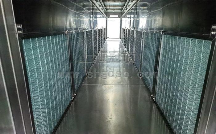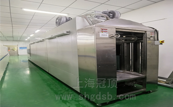 1、內腔尺寸:進料口高度 1000mm,進料口寬度 600mm, 2、外形尺寸:長 8600mm*寬 1200mm*高2237mm; 加熱區長 6000mm, 進料部分長 500mm,出料部分 500mm; 3、最大產品工裝尺寸:H800*φ400mm); 溫區:3 個獨立溫區控溫,每個溫區含主控溫和和超溫保護并可獨立控制。 過濾系統:加熱、冷卻段新風口及運風兩側均配中效過濾器過濾,保證產品表面潔凈度2萬級以內。冷卻段:冷卻段由自然過渡冷卻段和強制風冷段組成,自然過渡冷卻段長300mm, 強制風冷卻段長1300mm,冷卻段兩側裝中效過濾器,腔內微正壓,防粉塵進入污染產品,保證潔凈度2萬級以內。 我司專業生產隧道爐、烘干線,此潔凈懸掛烘干線具體工藝參數請來電詳詢:021-67353639